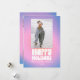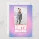 Esta divertida tarjeta de vacaciones presenta un fondo degradado de rosa intenso a púrpura con letras retro burbujeantes que dicen "Felices Fiestas", además de espacio para una foto y nombre personalizado. La paleta vibrante y el tipo inspirado en los 70 la hacen perfecta para familias que aman el color, la creatividad y el diseño atrevido. Ideal para enviar alegría festiva con un toque divertido y moderno.