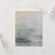 Grullas en el río chino es un pincel en el estilo tradicional chino del "gongbi". Acuarela y tinta sobre papel de arroz. Desde la antigüedad en China, la grúa ha sido considerada como un ave auspiciosa, junto al mítico fénix entre todos los pájaros con un aplomo divino. También fue un símbolo de longevidad e incorruptibilidad. Como una grúa era considerada la ave de mayor rango, se la usó como la demarcación más alta de la condición de tribunal de la China Imperial, y su aparición en la insignia de rango de la bata de un funcionario firmó que el que usaba era un funcionario de primer rango, o más alto. La grúa suele representarse sola en una roca rodeada por la marea creciente, que representa alcanzar el rango civil más alto. Como la palabra china "chao" significa tanto marea como gobierno, dinastía o tener una audiencia con un emperador. Así, una grúa de pie antes de la marea representa a un ministro de alto rango que se presenta ante su emperador. Incluso estar solo significa "haber logrado algo a través de sus propios esfuerzos", tener éxito a través de la diligencia en los estudios. GongBi es una técnica realista cuidadosa en la pintura china, lo opuesto al estilo interpretativo y libremente expresivo de XieYi. La técnica requiere que las pinceladas "sean tan detalladas como puedan ser", utilizando pinceles muy detallados que delimitan detalles con precisión y sin variación independiente o expresiva. Además, trata de lograr un equilibrio entre la expresión artística y la vitalidad, a menudo es muy colorida, y normalmente representa temas figurales o narrativos. Gongbi requiere dibujar con líneas finas primero para representar la imagen exagerada de los objetos y luego agrega tintas de tinta y colores capa por capa para acercarse a la perfección de la exquisitez y el arte fino.