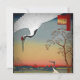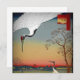 Imagen pintada de antaño de dos grúas, un arroyo y cerezos.