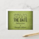 Anuncie a su boda con una invitación moderna como esta Grunge de moda Salve la Postcarta de fecha en verde oliva con un fondo de papel falso de textura de la época y un diseño tipográfico elegante. Fácil de personalizar, simplemente agregue los detalles de su boda en los campos de texto proporcionados. Haga clic en el botón "Personalizar" para encontrar opciones de personalización adicionales.