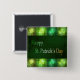 Un ilustracion del Día de San Patricio: 4 formas diferentes de shamrock y letras del "Feliz Día de San Patricio" en los colores de la bandera irlandesa sobre un fondo verde y gris.