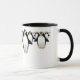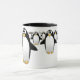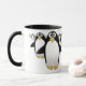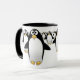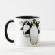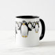 Grupo de pingüinos en una taza de café - interior negro, con una manija negra.