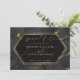 GUARDA LA FECHA | Elegante boda en negro y dorado - un marco dorado y negro rodea los detalles, el fondo es un efecto mármol líquido de color negro carbón y dorado con lo mismo en la parte posterior. Una combinación de caligrafía script combinada con un diseño de texto minimalista y contemporáneo lo convierte en una suite de boda de estilo de tendencia. Diseño creado para TheBarefootBride™ por © WhimsicalArtwork™. Esto es parte de una colección de suites de papelería de boda con accesorios de boda a juego y también papelería para baby shower y otras ocasiones. No dude en hacernoslo saber si necesita ayuda.