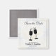 Diseño personalizado, ahorre los imanes de fecha con los nombres de la novia y del novio y la fecha de boda. Colorido tema de copas de vino con un fondo rápido.