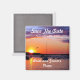 Personalizado Guarde los imanes de fecha con rosas rojas. Agregue su nombre y fecha de boda para que sus huéspedes bodas sepan que debe reservar esta fecha para su boda. Este diseño presenta una hermosa puesta de sol.
