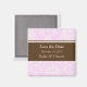 Guarde la fecha, imán damascal adornado con fondo rosa y acento chocolate. Copyright © 2009 PixDezines.com y PixDezines en zazzle.com