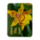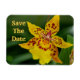 Hágale saber a tus amigos y familia la cita con tu boda con este imán de orquídeas amarillas y rojas. Personalízalo por ese toque único.
