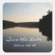 Salven a los pegatinas de citas para bodas que presentan una hermosa foto de un lago pacífico al atardecer, el texto es completamente personalizable con su fecha boda.