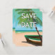 Guardar la fecha barco de pesca vintage en una playa