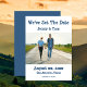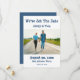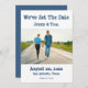 Una tarjeta Casual Card de Invitación Save The Date Photo Boda diseñada con la foto de tu pareja favorita. El texto de la parte delantera incluye: Hemos establecido la fecha, los nombres de la novia y de Groom, Su fecha Boda, Ubicación Boda e Invitación a seguir en azul sobre un fondo blanco. El reverso es el fondo azul. Para personalizar con los detalles de su boda, simplemente reemplace la foto de ejemplo con nuestra plantilla sencilla. Haga clic en FIT y asegúrese de que la imagen está situada en el centro. Después inserte los detalles del texto después de reemplazar el ejemplo. Esta tarjeta está disponible en forma impresa y descargada.