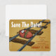 Utilice esta tarjeta divertida para su aviso de "guardar la fecha" para los anuncios tempranos de su boda. Con una divertida caricatura de una fruta de dátil de palma atada a algunas vías de tren, ¡seguro que llamará la atención y hará reír! ¡Fácil de personalizar! Simplemente escriba su información en los campos proporcionados o haga clic en "personalizar" para tener aún más control creativo. ¡No les dejes que se olviden de ti... envíales esta tarjeta divertida!