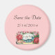 Un imán Save the Date con bello arte victoriano vintage de un par de elegantes cisnes blancos flotando en un lago enmarcado por rosas rojas y flores rosadas olvidadas-no-me-flores. Pulse en Personalizar (It) para cambiar las fuentes y añadir texto y más.