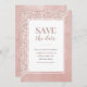 Guarde la invitación de fecha en un patrón de color agua y purpurinoso rosado polvoriento.