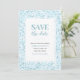 Invitación de guardar la fecha en un patrón de mosaico azul acuático.