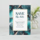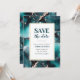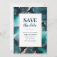 Guarda la invitación de fecha con arte verde azulado de tinta de alcohol verde y dorado. © Mini Impresiones Moi