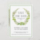 La corona de hojas de eucalipto en acuarela con semillas y follaje forestal recolectado crea una paleta de colores neutros simple para la pareja moderna. Los Save the Dates con fotografía en el reverso hacen que sea fácil mostrar una foto de cualquier forma o dirección, simplemente muévela y cambia el tamaño según sea necesario. Puedes cambiar el color del borde, la fuente y el patrón de fondo utilizando las herramientas simples proporcionadas.