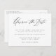 ¡Caramba! ¡Vivimos en tiempos desafiantes! No te quedes paralizado cuando las cosas se ponen difíciles. ¡Es hora de cambiar de rumbo! Necesitarás un poco de espacio para recuperarte, adaptarte y encontrar nuevas formas de reprogramar y quizás incluso reinventar tu día especial. ¡Déjanos ayudarte! Estas clásicas tarjetas de posposición de eventos en negro y blanco incluyen un mensaje de texto fijo en una tipografía de letra cursiva con fuente minimalista para tu mensaje. Perfectas para cualquier ocasión que necesites retrasar o reprogramar. Haz saber a tus invitados que necesitas posponer el evento sin perder la compostura con este diseño clásico y perenne. No te desanimes. Ahora tienes tiempo para hacer que tu nueva celebración sea aún más como siempre has querido que sea. Recuerda: los eventos imprevistos suceden y tus invitados entenderán ;-). Si necesitas ayuda, háblanos en el chat de Zazzle y estaremos encantados de ayudarte.