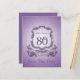 Diseño en el estilo de escudo de armas en colores púrpura con gran "CELEBRACIÓN DEL 80º ANIVERSARIO" sobre una cinta. Diseño en postal vertical de "Guarde la fecha" con nombre (al frente) y texto personalizable (en la parte posterior). Puede cambiar fácilmente el texto (color, fuente, tamaño y posición) haciendo clic en el botón de personalización. Disponible con diseño para cumpleaños 60, 70, 90, 95. Invitación de cumpleaños, libro de invitados de cumpleaños (cuaderno espiral), caja de favores, etiqueta de regalo, suministros para fiestas (servilletas de papel y plato de papel), almohada, taza y otros regalos de cumpleaños para abuelas coincidentes.