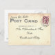 Utilice este diseño creativo de tarjeta postal vintage como su tarjeta de guardar la fecha. Se puede utilizar para todo tipo de ocasiones, bodas, cumpleaños, almuerzos, picnic, reuniones familiares, reuniones de secundaria, seminarios de ventas, convenciones, etc.