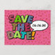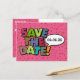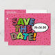 Con corazones de amor confeti, una divertida y moderna tarjeta de guardar la fecha de cómic inspirada que pone el golpe, zap, pow en el anuncio de la fecha de su boda. El reverso incluye información adicional sobre el evento. Diseñado por Thisisnotme