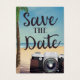 Guarda la fecha vintage Cámara y playa - Boda/Compromiso celebración poster de arte.