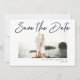 Guarde la Invitación Boda de fecha. Texto de escritura a mano con lápiz de simplicidad moderna sobre foto centrada. Remolque opcional de arena mojada. Diseño completamente versátil y de estilo propio. Ajuste fácilmente el tamaño, estilo y ubicación de todos los elementos de texto. El filtro de niebla blanca se utiliza para mostrar, pero puede cambiar esto haciendo clic en el modo Personalizar avanzado.