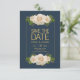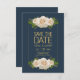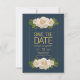 Un elegante anuncio de Save the Date con grupos de rosas color crema contra un fondo azul marino todo enmarcado con una delgada línea dorada. <a href='https://www.freepik.com/free-vector/wedding-card-with-white-roses_1261901.htm'>Diseñada por Freepik</a>). <br/>() La tarjeta es fácil de personalizar con su redacción, fuente, color de fuente, opciones de forma de papel y elección de seis tipos de papel.<br/>() ¿No es exactamente lo que estás buscando? Todos nuestros productos pueden ser personalizados diseñados para satisfacer sus necesidades sin coste adicional.<br/>() Simplemente contáctenos a heartfelthelper@gmail.com.<br/>Productos de coordinación disponibles: ¡Pídanos!
