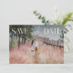 ¡Comparte las noticias con estilo con estas modernas invitaciones de compromiso! La invitación cuenta con una inscripción en blanco y a la moda sobre la foto de compromiso horizontal. Personalice la parte delantera de la invitación agregando sus nombres y detalles adicionales. La tarjeta se revierte a un patrón elegante.
