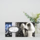 Derechos de autor 2012 Diseños de Pam. Guarde la fecha para su boda con esta tarjeta de fotos de luces brillantes en azul oscuro, plata, negro y blanco. Personalizar este diseño con tu foto favorita. Este diseño presenta globos luminosos con una cinta vertical transparente y un impresionante marco oval adornado con elegantes remolinos y hojas.