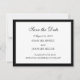 Guardar la tarjeta de fecha se muestra en un diseño clásico pero moderno en papel básico en el color blanco con texto negro y bordes. Personalizar esta tarjeta y cambia el texto apropiado a la tuya, haz clic en el botón de personalización y cambia el texto de ejemplo al tuyo.