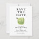 Esta caprichosa tarjeta de fecha guarda un trozo de hierba dibujado a mano y una abeja de burbujas persistente. Es perfecto para bodas al aire libre de cualquier tipo.