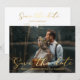 guardar la fecha boda de caligrafía dorada fotografía Tarjeta de nota tarjeta de dos caras, en el lado posterior información del boda.