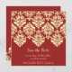 Guardar la tarjeta de invitación de boda blanca simple elegante damasco rojo indio asiático surasiático