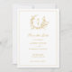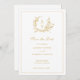 Escudo de hojas de flores silvestres clásicas y elegantes y monograma de oro falso guardan la tarjeta de fecha.