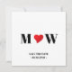 Guarde la fecha lindo personalizado de corazón rojo iniciales monograma tipografía moderna minimalista tarjeta elegante moderna. iniciales de los serif negros personalizados, corazón rojo, fondo blanco con texto negro completamente personalizable. Gran tarjeta de saludo para la invitación de compromiso, el Día de San Valentín, boda, compromiso, aniversario, novio, novia, para parejas, recién casados, BFF, amigos, etc. Compruebe el resto de la colección para encontrar elementos de coordinación.
