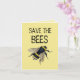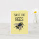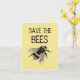 ¡Ayuda a salvar a las abejas! Están desapareciendo a un ritmo alarmante. En el frente hay una imagen vintage de una abeja. El interior está en blanco para sus notas/saludo y ambas páginas están pintadas de amarillo. En la parte trasera hay información sobre cómo ayudar a salvar a las abejas.