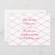 Infórmele a sus invitados la fecha antes de tiempo con estos Crisscross rosado, Salve la fecha, anuncios de bodas postales. Personalice fácilmente su información sobre los formularios de plantilla. Examinar muestreo de productos coincidentes: