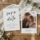 Anuncie su gran día con diversión y estilo usando nuestra divertida y moderna boda estilo escritura a mano Minimalista Guardar las tarjetas de fecha con su foto en la parte posterior. La combinación perfecta de diseño contemporáneo y elegancia personalizada, esta tarjeta presenta un estilo de letra lúdico pero sofisticado, añadiendo un toque único y delicioso a las invitaciones bodas tradicionales. Con un enfoque en detalles esenciales, sus nombres y fecha de boda destacan bellamente en el minimalista contexto. Elaborada a partir de cartón de calidad superior, esto ahorra la tarjeta de fecha deja una impresión duradera. Su textura suave complementa el estilo de escritura a mano de la moda, creando una pieza visual atractiva y divertida que tus seres queridos apreciarán. Comparte tu emoción e invita a que marquen sus calendarios para el día que digas "lo hago". Que esta tarjeta sea la introducción perfecta a la alegría y la risa que esperan en su día especial.