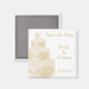 Guarde los imanes Date con un pastel de boda blanco. Personalizar con tu propia información en el espacio proporcionado. También disponible en postales y sellos.