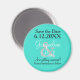 Turquesa con texto de escritura blanco y negro. Personalice estos datos Guardar la fecha con los primeros nombres y fecha de Boda de la novia y el novio. Encantador de mandar a sus bodas invitados a poner su refrigerador u otra superficie magnética como un agradable recordatorio del boda que se avecina. Diseños de TamiraZDesigns.
