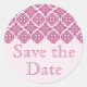 diseño de encaje rosa 'guardar la fecha' con sellos postales coincidentes