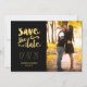 Estos Relieves metalizados dorados falsos y fotos modernas negras Salven la tarjeta de fecha con tipografía de escritura en negrita son una bonita combinación de glamour y diversión. ... Elke Clarke © ©