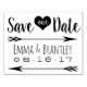 Este estampado de bodas "Save the Date", de moda, presenta un diseño vintage y moderno con corazones y flechas. Personalizar con sus nombres y fecha de boda. ¡Perfecto para los proyectos DIY!