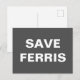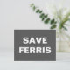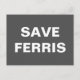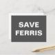 Una postal con el sencillo texto "Save Ferris", en blanco sobre un fondo gris. No dude en cambiar el tipo de letra y los colores.