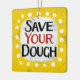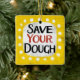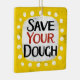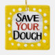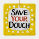 "Save Your Dough" es un divertido diseño de texto con una forma de acento blanco rodeado de puntos de textura caprichosos.