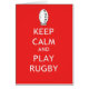 Regalo ideal para los fans y los jugadores del rugbi. Hecho en el estilo de los Británicos bien conocidos WW2 "guarde la calma y continúe" los posters de la propaganda; la corona es substituida por una bola de rugbi y el lema lee "guarda rugbi de la calma y del juego".