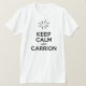 Guarde la calma y la camisa del Carrion con las letras negras y los halcones que circundan desde arriba