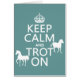 Esto lee guarda calma y trota encendido. Hay dos caballos al lado de las letras. Es un hermoso diseño limpio, popular entre cada uno que ame caballos y el montar a caballo.
