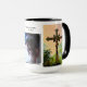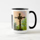 La imagen del crucifijo es empañada por el enfoque en pero la imagen de Jesús s en foco. La imagen de centro de la cara de Jesús se acompaña con el texto "guarda sus ojos en Jesús. Tengo gusto de tener recordatorios como esta ayuda visual de recordar que Jesús en el día y esta taza la hace que una primera cosa más fácil en el morn también se puede poner en su escritorio o tabla del lado (o aún tarjetas y rosario santos del lugar dentro)