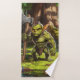 Una ilustración detallada y de temática fantástica de un guerrero goblin de piel verde y complexión poderosa. La figura se mantiene confiadamente en un camino del bosque, blandiendo un hacha enorme de hoja ancha y cubierta de runas. El goblin tiene orejas puntiagudas distintivas con perforaciones, una mata de pelo sujeta en la parte superior de su cabeza y ojos amarillos penetrantes. El fondo es un follaje exuberante y bañado por el sol con un enorme tronco de árbol, lo que sugiere el papel de la figura como guardabosques o cazador en un bosque mágico. Los gráficos se caracterizan por colores vibrantes y sombreado dinámico, perfectamente adecuados para la atmósfera de los RPG.